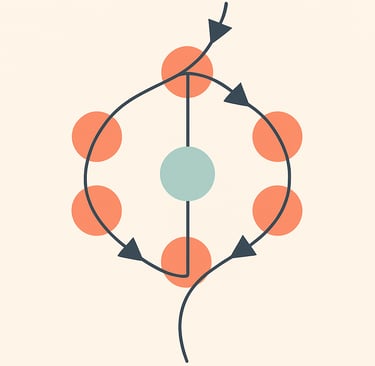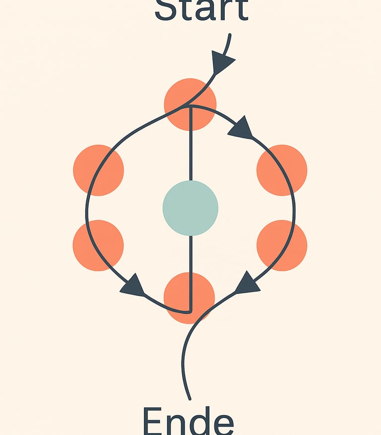 Fädele fünf bis sechs weitere Perlen um die zentrale Perle, wobei du darauf achtest, dass sie gleichmäßig verteilt sind.