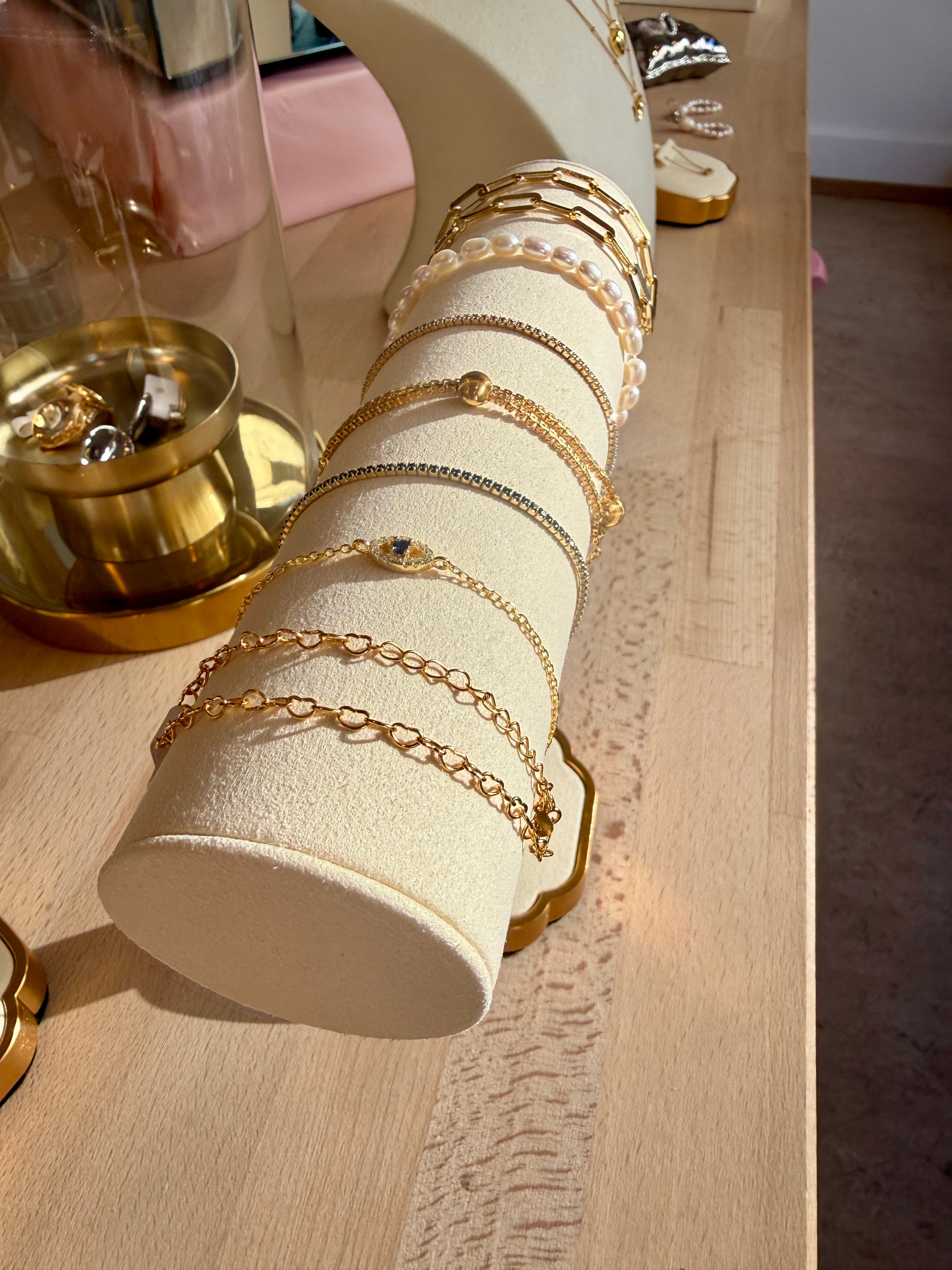 Schaue dir unseren Schmuck an. Probier unser ausgesuchtes Stück an und mach dir selbst ein Bild. Wir stellen verschiedene Armbänder, Halsketten und Ringe aus. Ideal als Geschenk und/oder als Belohnung für dich selbst.