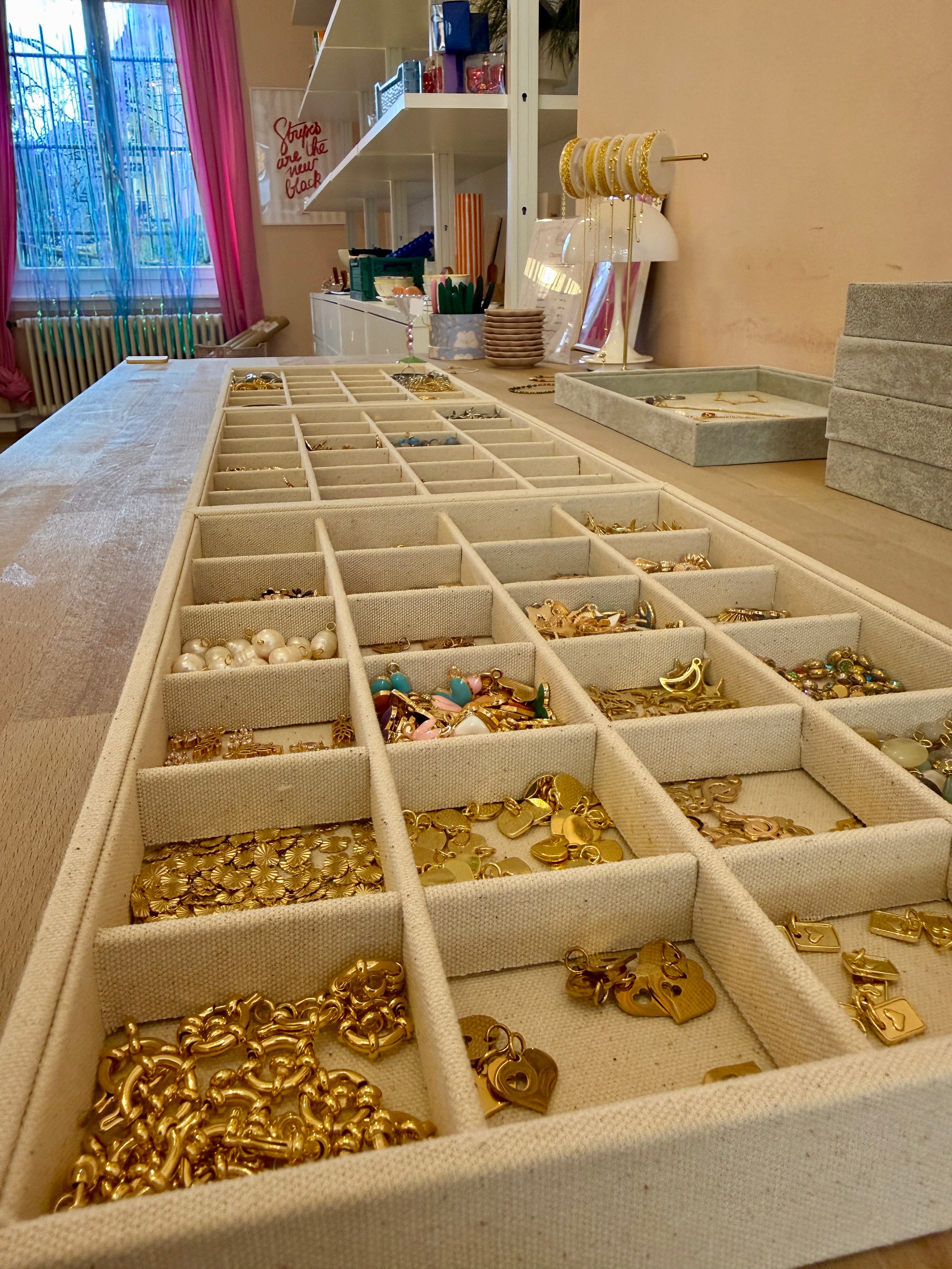 An unserer charm.bar kannst du Armbänder, Halsketten, Schlüsselanhänger und Natelketten selber gestalten. Das Material ist aus robustem Edelstahl. Du entscheidest dich für eine Kette und die entsprechenden Charms. Deine Entscheidung, Dein Schmuckstück.